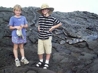 Leif und Vanessa Steffny staunen: hier verschwand eine Straße unter der Lava